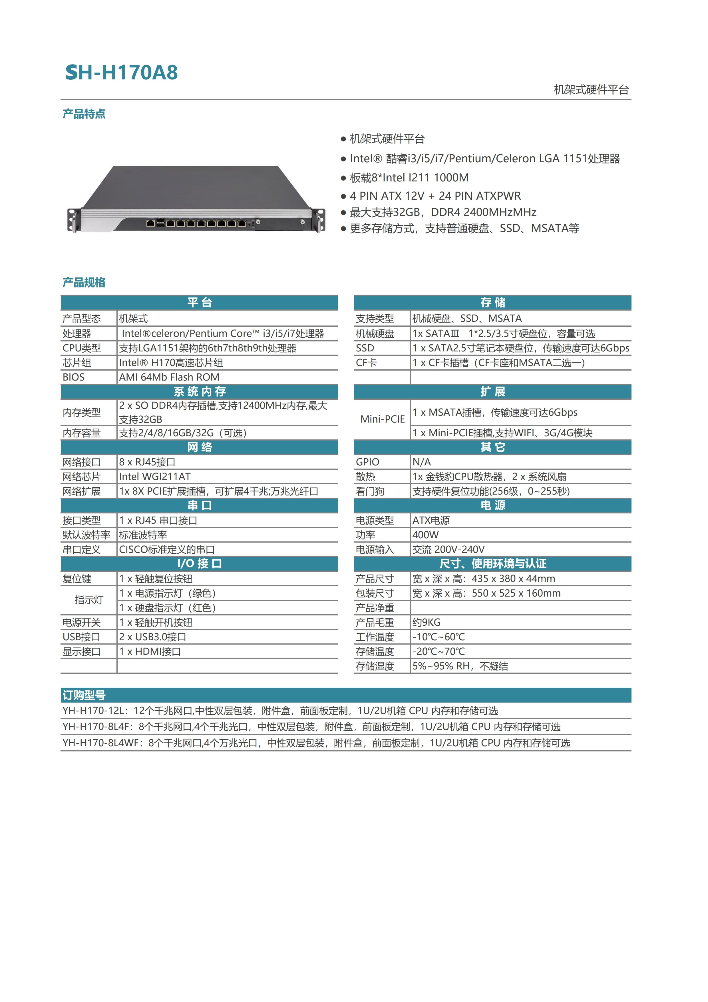 SH-H170A8 机架式硬件平台机架式硬件存储平台