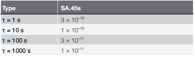 2. SA.45s 输出标准的CMOS电平10MHz 及 1PPS 信号,短期稳定度(阿伦方差):2.5E-10@1s,老化率3E-10/月,温度特性5E-10(-10℃ ~ +70℃),另可选择宽温的产品(-40℃ ~ +85℃)。